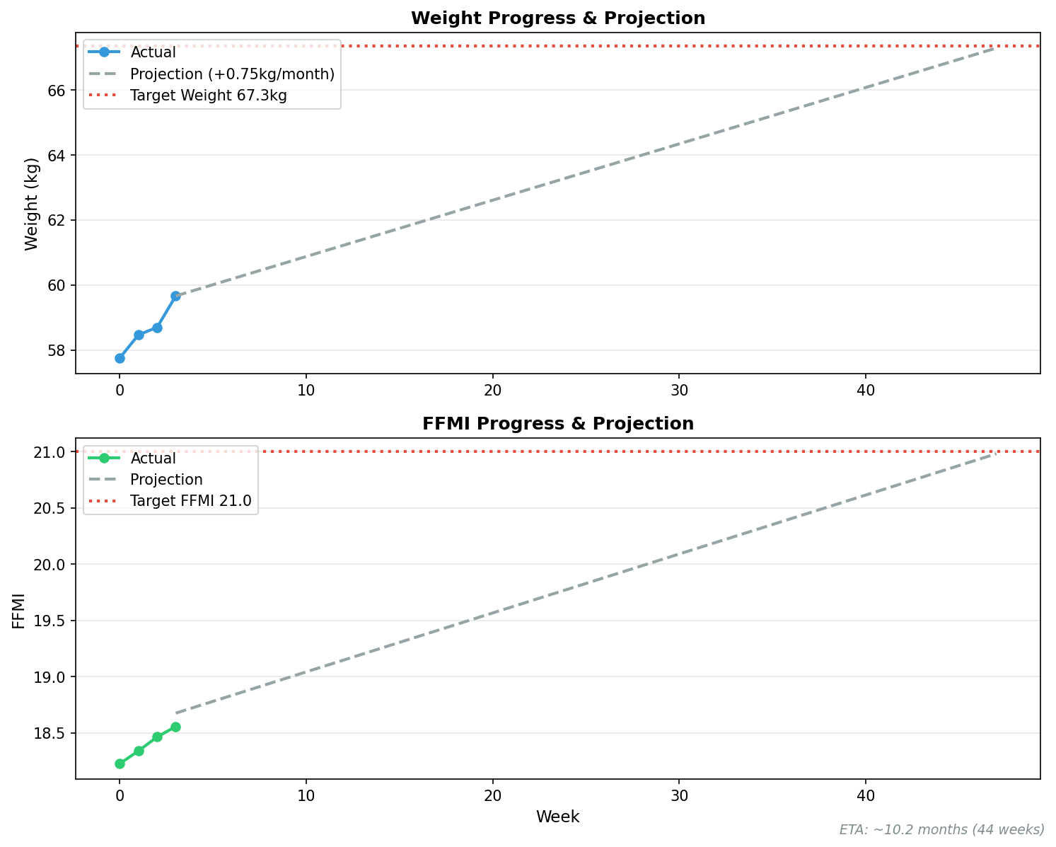 - 目標: FFMI 21.0 (体重 67.3kg)