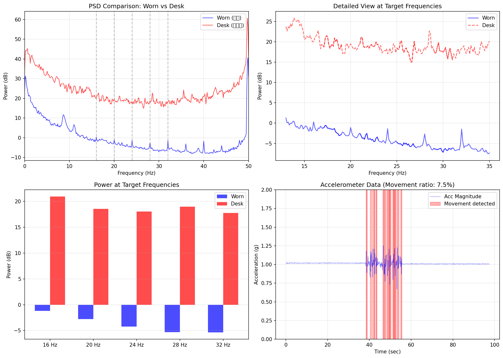 - 装着時は皮膚との接触がシールドとして機能し、ノイズが抑制される