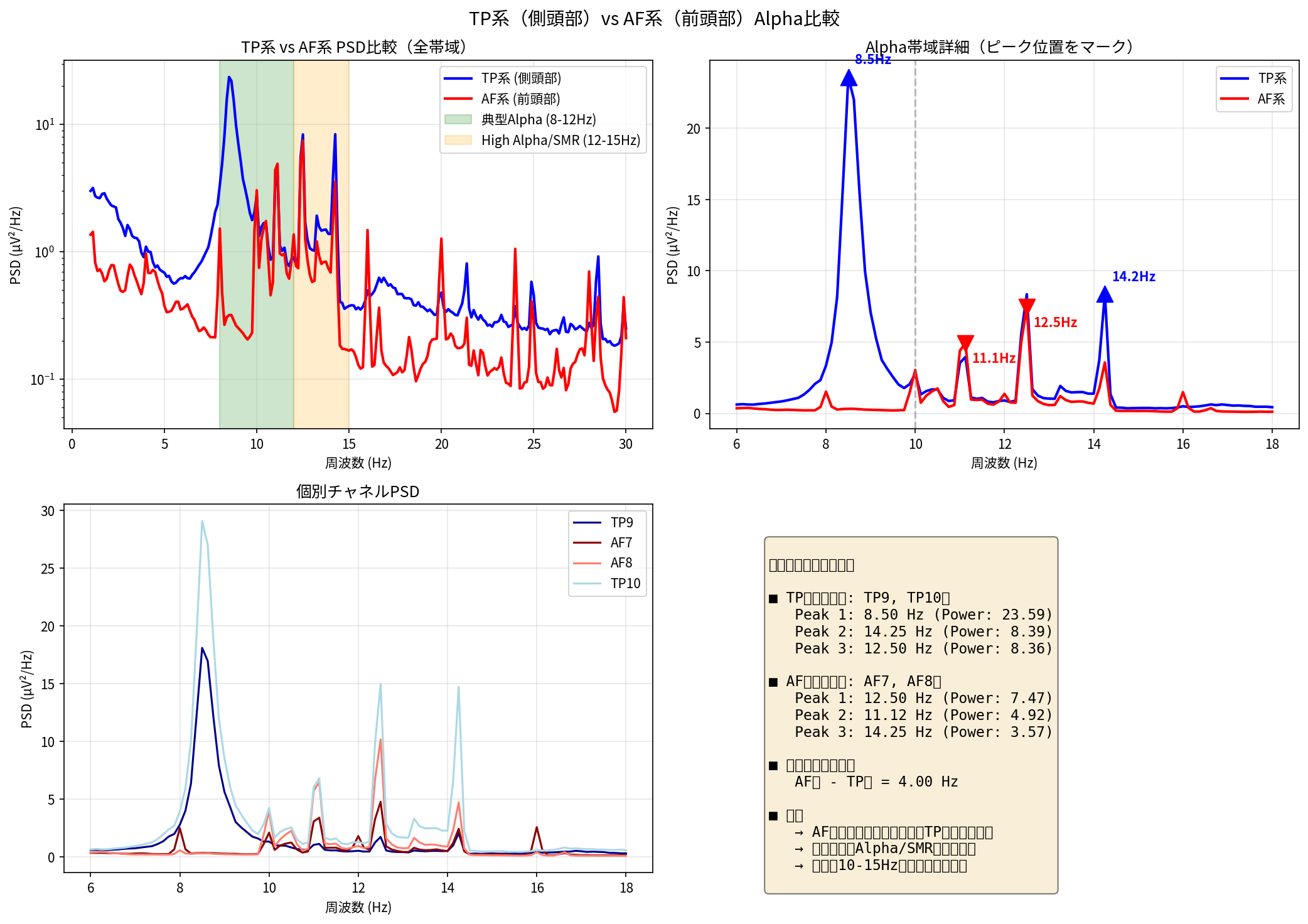 | AF系(前頭部) | 12.5 Hz | SMR / 高Alpha |